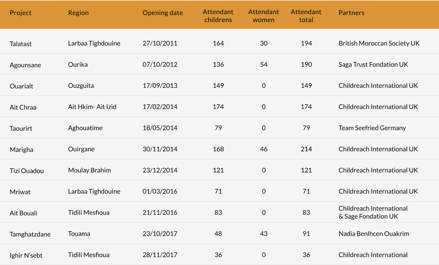 Summary table of the centers created in the Al Haouz Province (Atlas Mountains).
